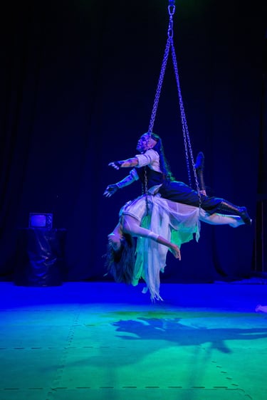 Our background spans a wide range of circus disciplines, allowing us to seamlessly transition from the raw power of floor acrobatics to the vulnerability and elegance of aerial arts. For us, the circus is a universal language of resilience and beauty. In every performance, we strive to convey the unique complicity that only comes from years of shared training and a shared life.